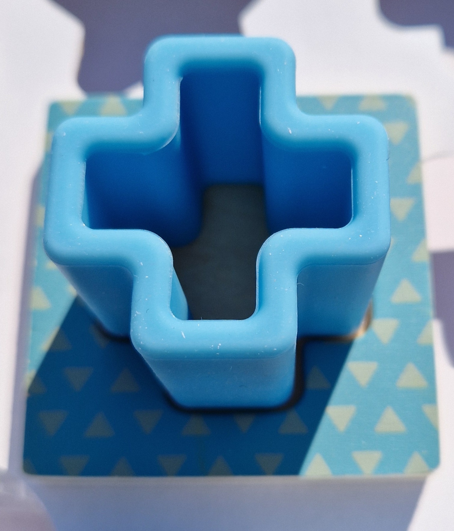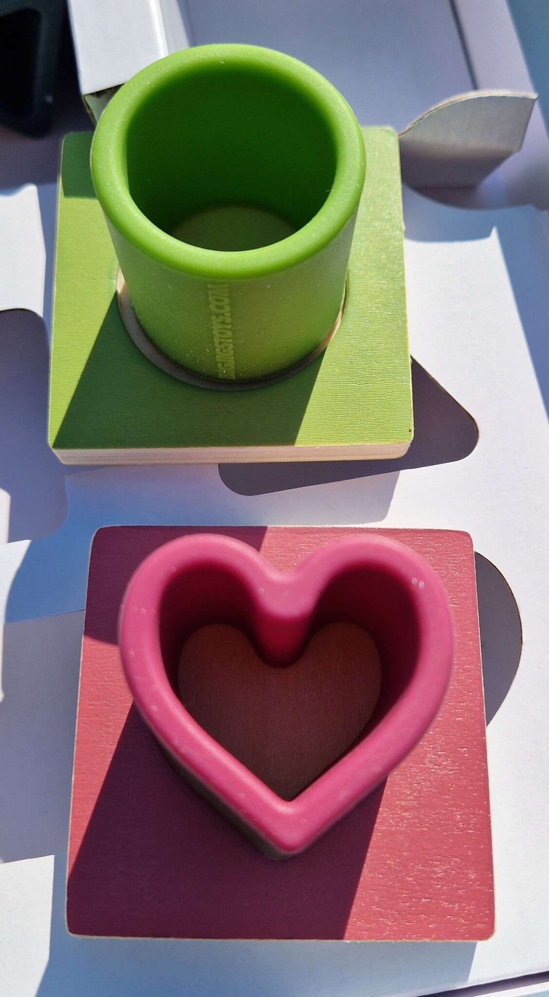 A sensory shape puzzle where children feel shapes in a bag before matching them to wooden boards. Encourages exploration, motor skills and shape recognition. Read more