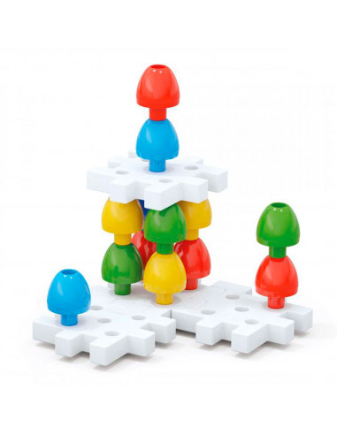 Use the double-sided printed cards and put the right color peg in the right place to complete the picture! You can also not use the cards and make beautiful structures with the plates and pins, by stacking the pins and puzzle pieces. Hours of fun guaranteed!