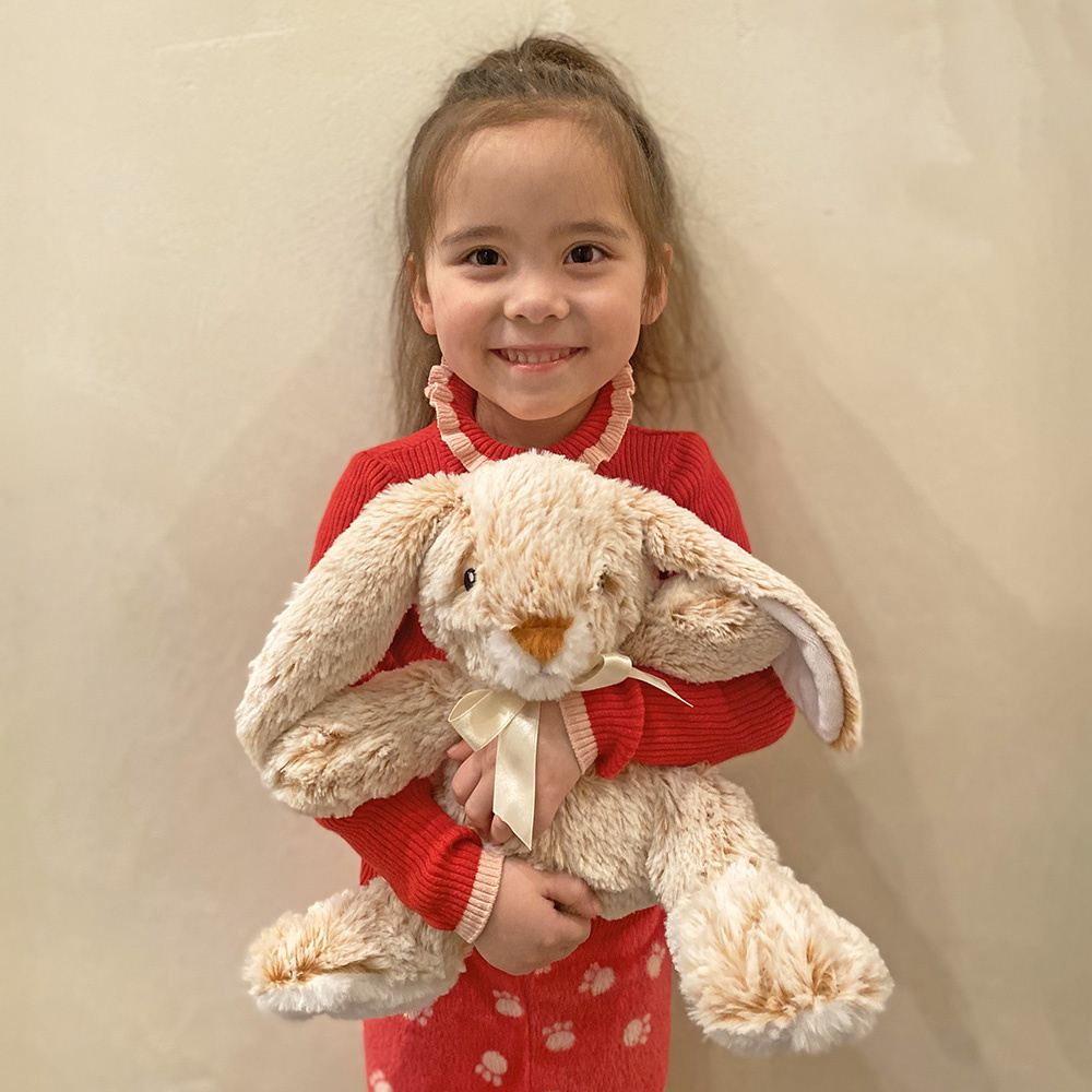 Wie wilt er nou niet knuffelen met dit schattige, zachte en warme konijn?