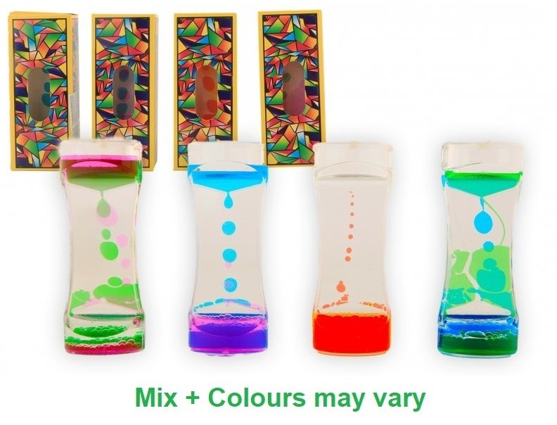 Deze prachtige lava zandlopers zijn gevuld met water en kleurrijke olie. Het is fascinerend om te zien hoe de kleurrijke druppels met variërende snelheden naar de bodem druppelen als je de zandloper omdraait. Deze liquid timer zal je kind fascineren en zorgen voor meer rust na een drukke dag, maar ook tieners en volwassenen vinden deze vloeibare zandlopers machtig om naar te kijken.