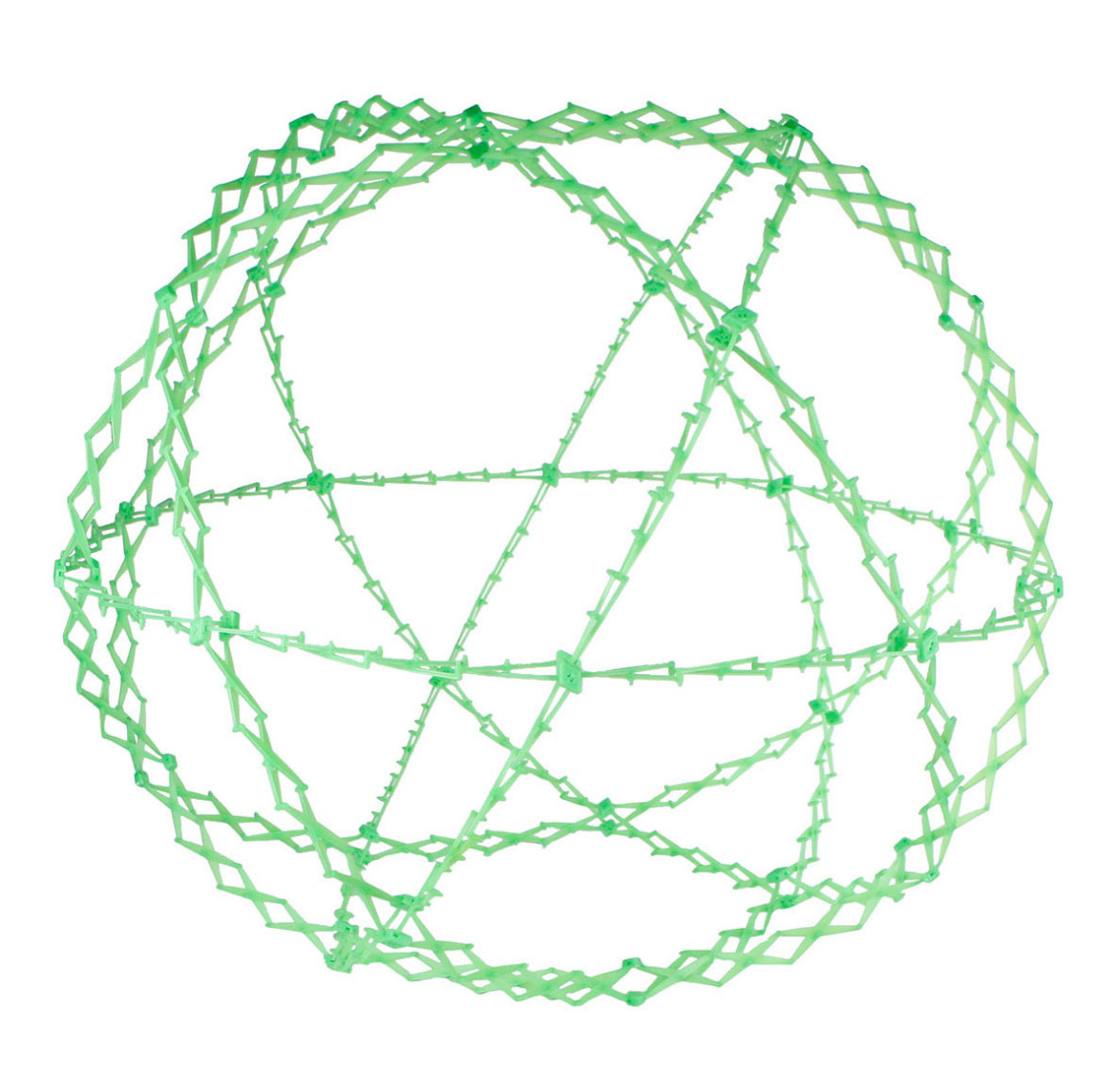 Maak kennis met de mega variant van de Adembal, ook bekend als Hoberman Sphere. Deze geweldige bal is niet zomaar een bal; hij verandert van een handzaam formaat van 28 cm in een indrukwekkende gigant van wel 100 cm! Gooi je hem in de lucht, dan vouwt hij zich op magische wijze uit. Vang je hem weer op, dan krimpt hij vanzelf weer in. Maar ook in rust is hij prachtig: trek je de bal langzaam open, dan ontvouwt zich een ritmische beweging die lijkt op een ademhaling. Dat maakt deze bal niet alleen leuk speelgoed, maar ook een waardevol hulpmiddel bij ontspanning, focus en zelfregulatie.