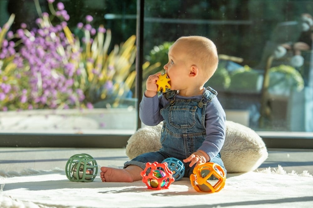 Het experimenteren met inhoud – bijvoorbeeld wanneer er kleine ballen in de flexibele bal worden gestopt – stimuleert nieuwsgierigheid en probleemoplossend denken.